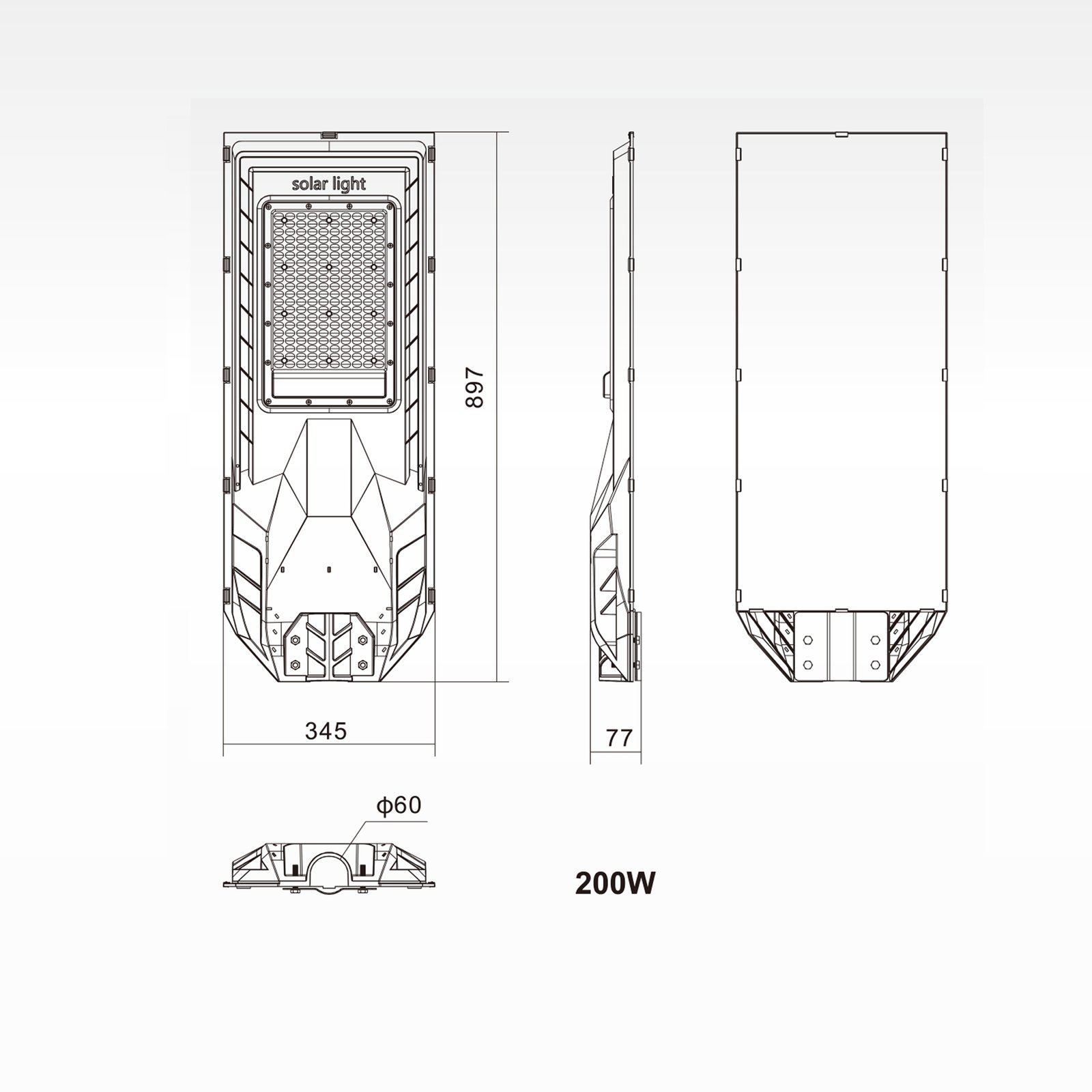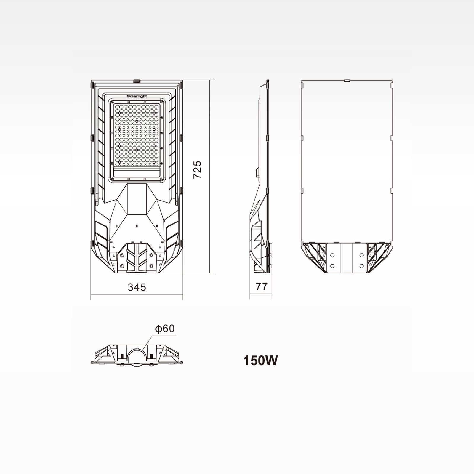 A: For the 150W model, we recommend a height of 5-7 meters. For the 200W model, 7-9 meters is optimal to achieve the best balance between brightness and light coverage area.